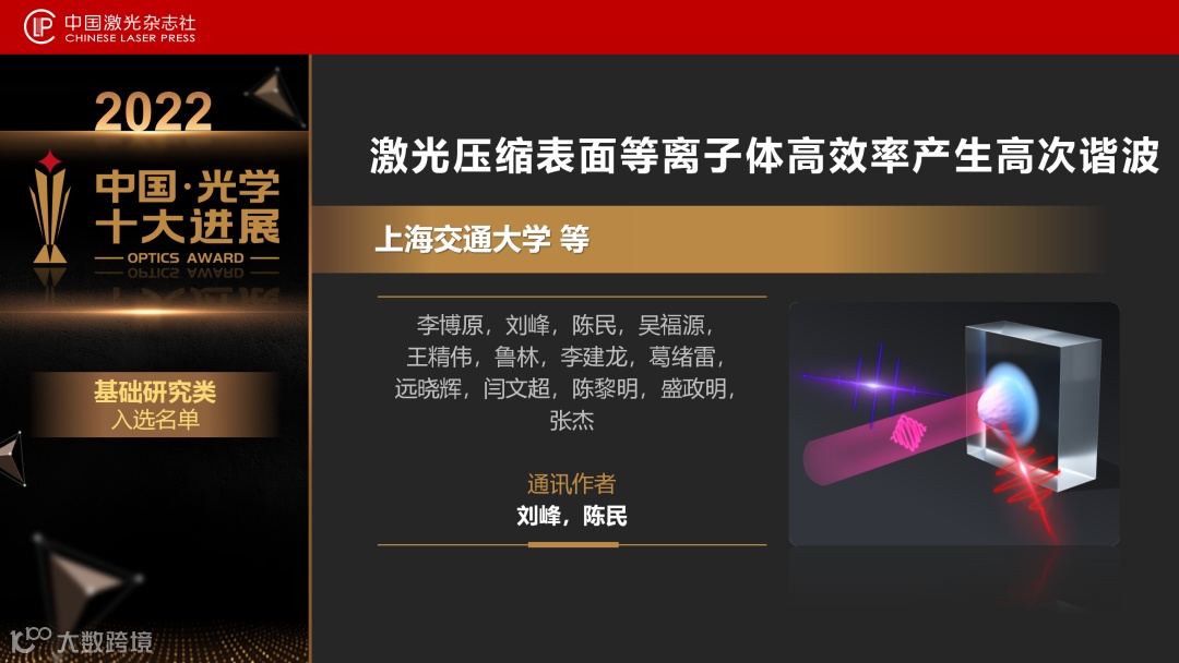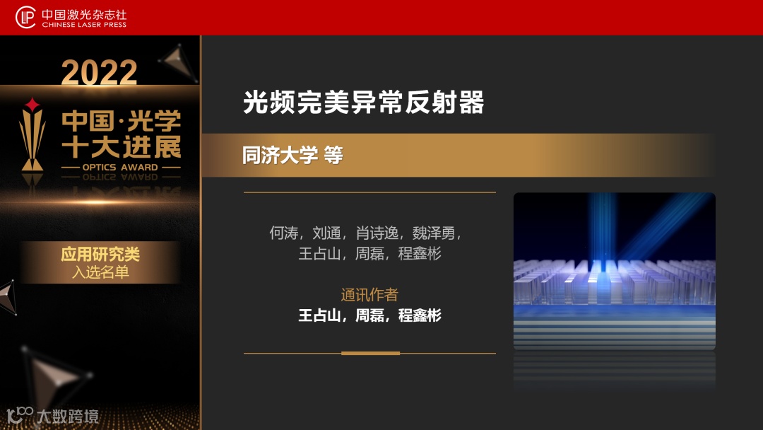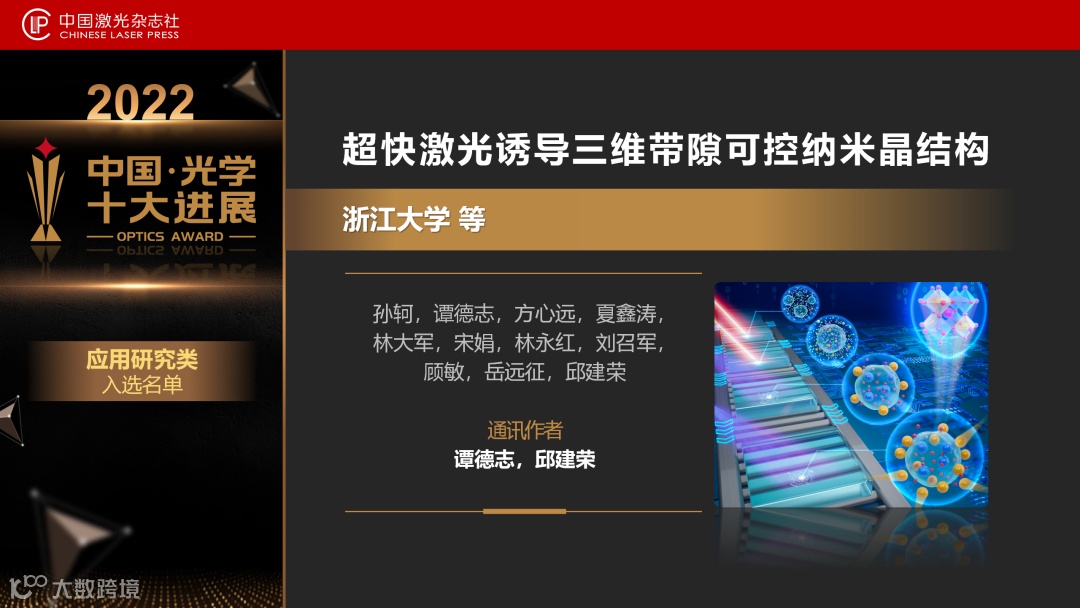 4月20日晚,中国激光杂志社重磅发布“2022中国光学十大进展”。
