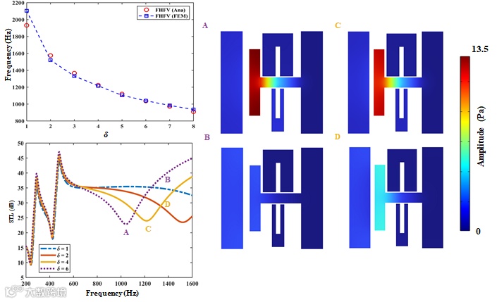 基于以上公式,计算MPP的共振频率,如图4所示,与有限元仿真进行对比,两者吻合较好。