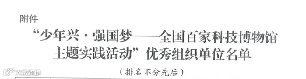 近日,中国自然科学博物馆学会下发了《关于对“少年兴·强国梦—全国百家科技博物馆主题实践活动”有关参与单位予以表扬的通知》,中国科技馆等50个单位被评为“少年兴·强国梦—全国百家科技博物馆主题实践活动”优秀组织单位,山东省仅3家,淄博市科技馆名列其中。