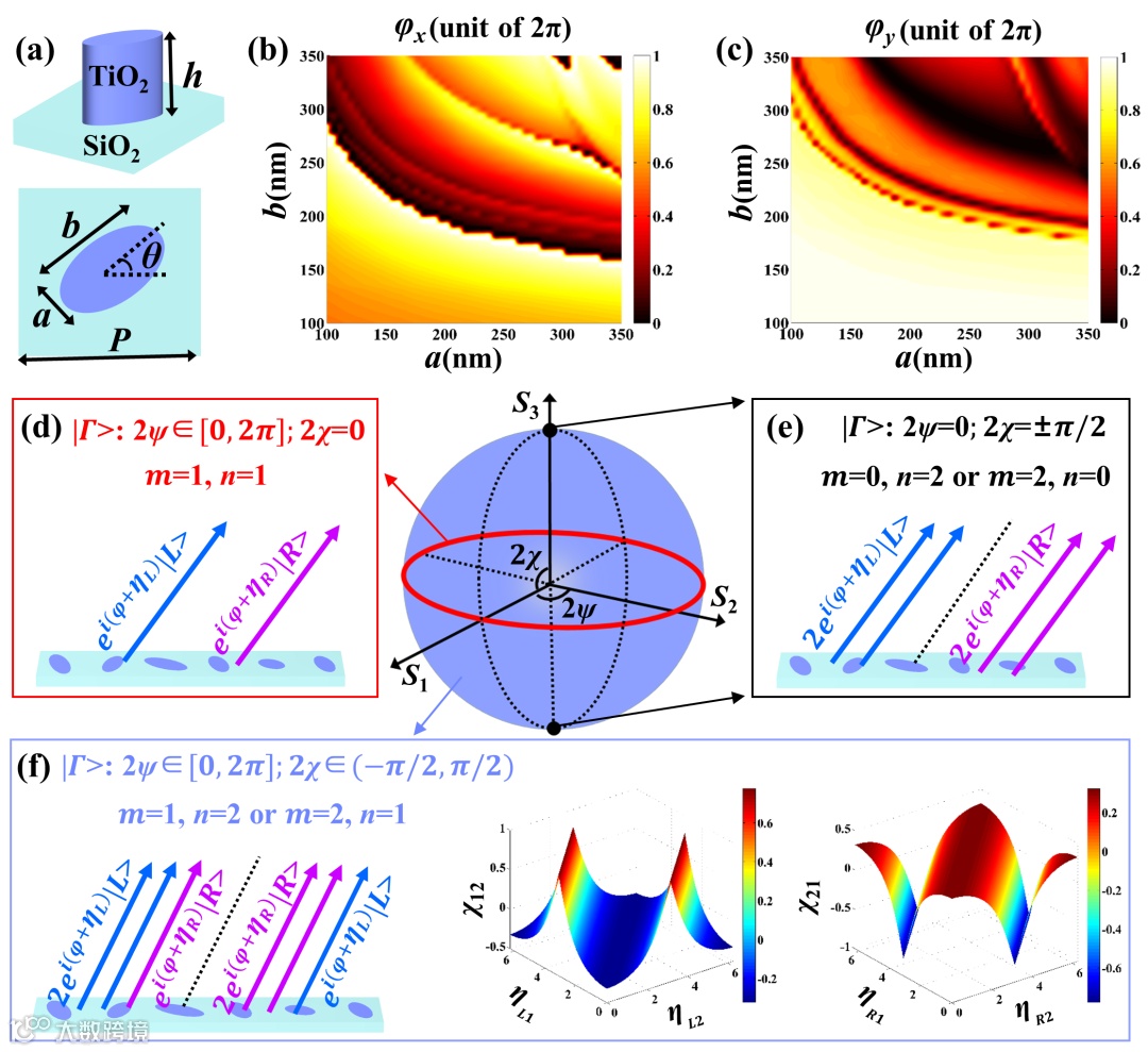 图2 超构表面结构设计及实现全偏振态波前调控的原理。