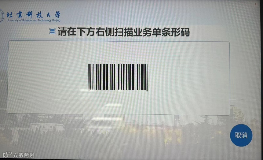 将报销单条形码置于收单机屏幕下方“二维码”区域扫描。