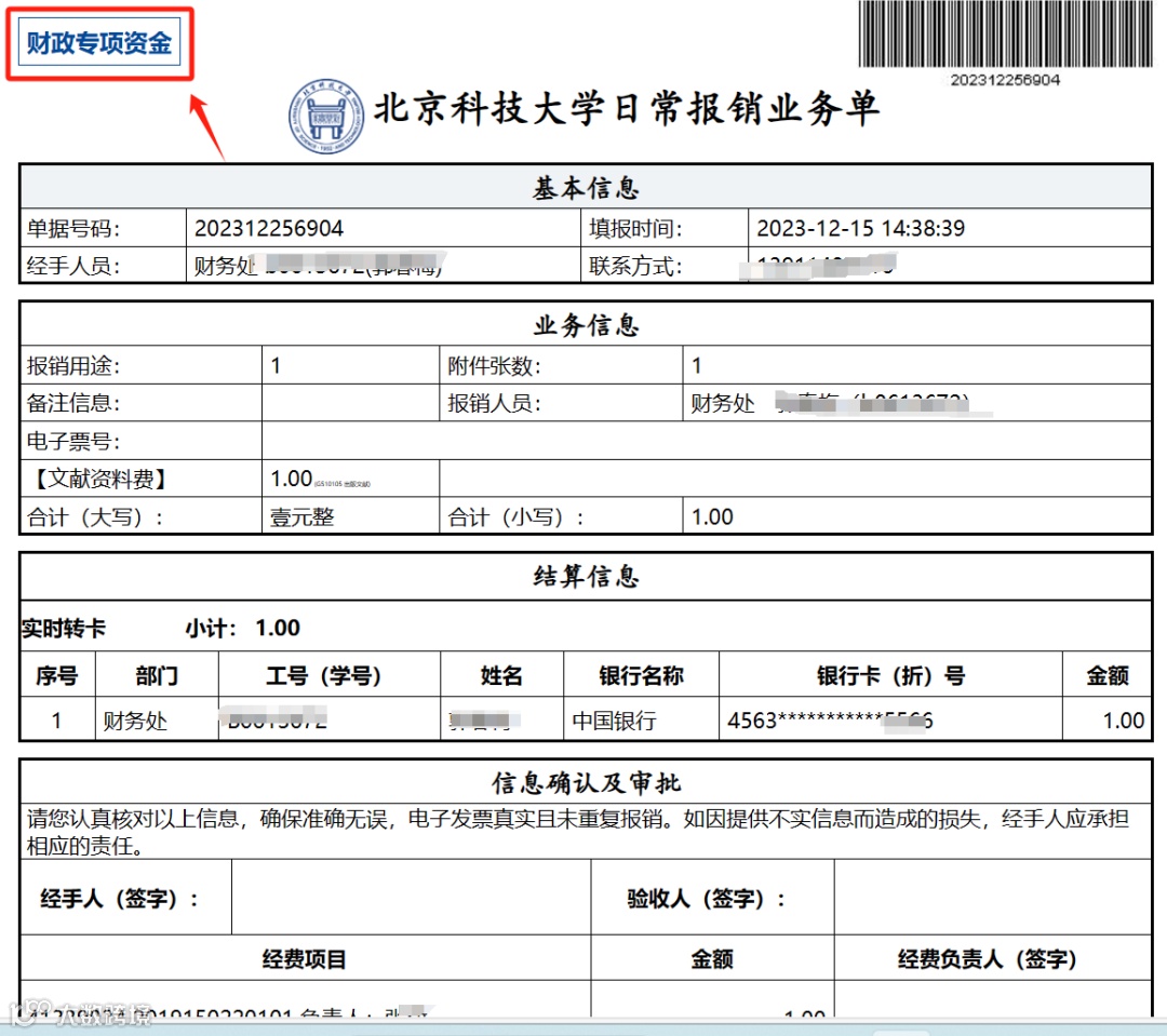 超简单!只要打印出来的网报单左上角有“财政专项资金”字样的就是财政专项资金了,赶快投递到自助收单机吧!