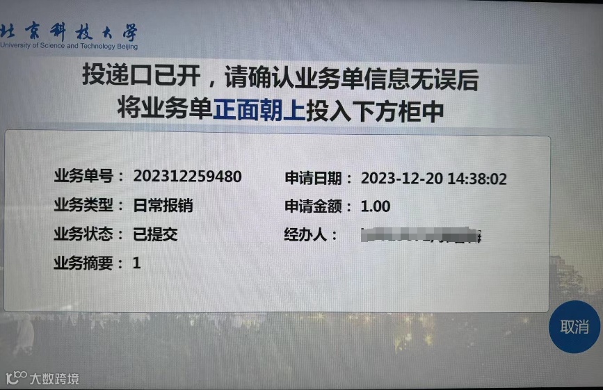 此外,为减少昌平创新园区广大师生两校区之间来回奔波,在园区管委会各部门、单位的大力支持下,财务处在园区(东区)主楼东侧门厅内设置一台财务报销自助收单机,收取全部类型财务报销单,不限于财政专项资金。