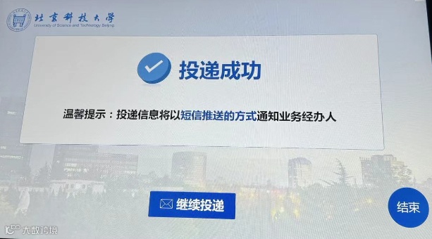 ✔请按照收单机上屏幕显示的分类提示信息找到对应的收单机进行自助投递。