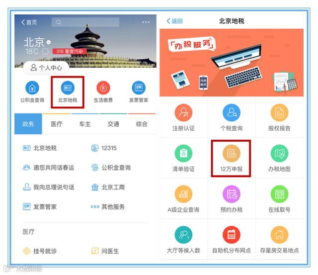 除传统的纸质申报外,北京地税局向本市纳税人提供了更加便捷的电子申报方式,纳税人可以通过进入支付宝、微信和访问地税网页的方式办理年所得12万元以上自行纳税申报。