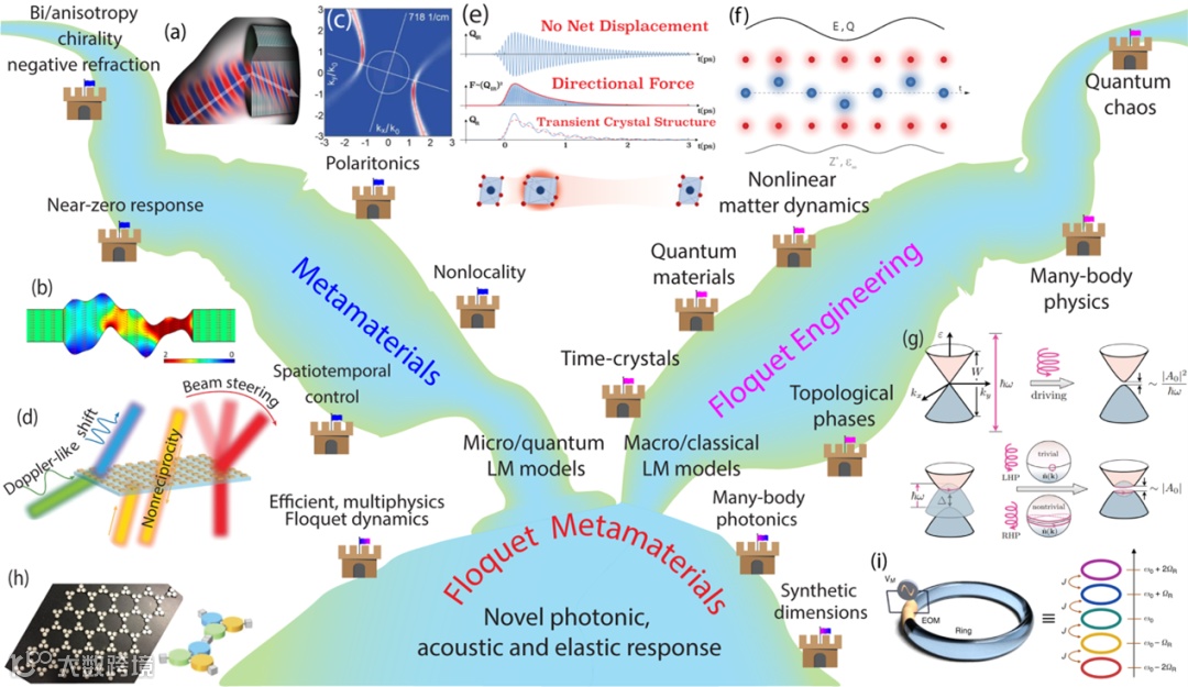 图1:Floquet 物理和超材料的主要进展和应用,及二者结合作为 Floquet 超材料的示意图