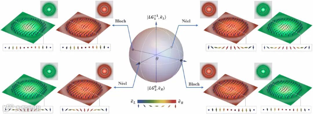 图1:在保形非线性光学频率变换过程中,信号光和和频光中的斯格明子结构可保持相同的拓扑结构,适用于各种斯格明子拓扑态。