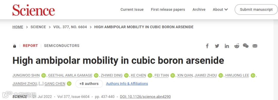 其实这项研究早已经展开,David Broido 等人(本篇论文的作者之一)从理论上预测该材料将具有高热导率。随后的研究也证明了这一预测。发表在《Science 》上的最新工作通过实验证实了陈刚团队早在 2018 年做出的预测,从而完成了分析:立方砷化硼对电子和空穴具有非常高的迁移率,「这使得这种材料非常独特,」陈刚表示 。