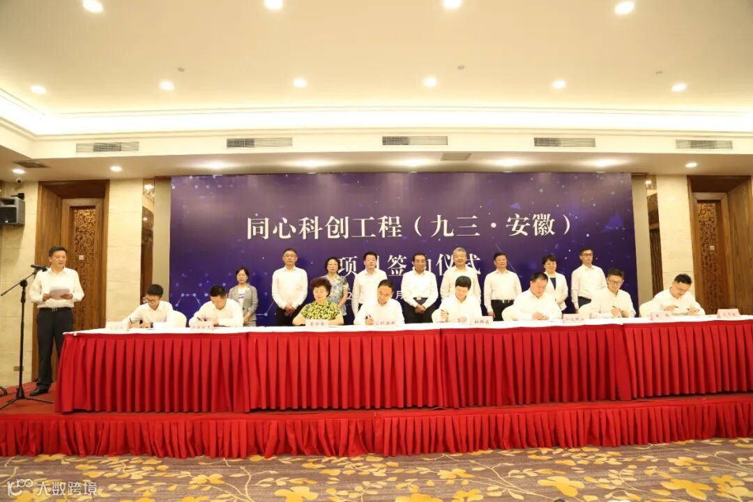 2021年9月2日上午,在合肥举行了“同心科创工程(九三·安徽)”项目签约仪式。全国人大常委会委员、九三学社中央副主席、中国工程院院士丛斌,安徽省委常委、统战部部长张西明,安徽省副省长杨光荣,九三学社安徽省委会专职副主委张腊梅,九三学社安徽省委会秘书长卢明霞,安徽省科技厅厅长罗平等领导出席会议,见证了项目签约。同心科创工程(九三•安徽)领导小组成员单位九三学社中央、省委统战部、九三学社安徽省委、省发改委、省科技厅、省经信厅领导参加了会议。
