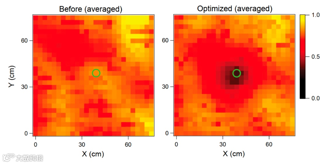表示优化前后波包幅值的比率。可以看到,SSM能够在不同的时间与位置,对脉冲响应实现明显的增益或压制。这一结果更大幅拉近了声波超表面与实际应用场景的距离。