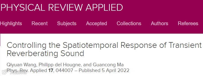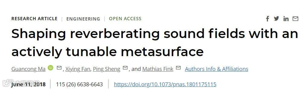 香港浸会大学马冠聪课题组对使用可编程声波超表面进行混响声场的有效调控进行了一系列研究,相关工作在2018年和2022年先后发表于期刊Proceedings of the National Academy of Sciences(PNAS)[1]和 Physical Review Applied[2] 。