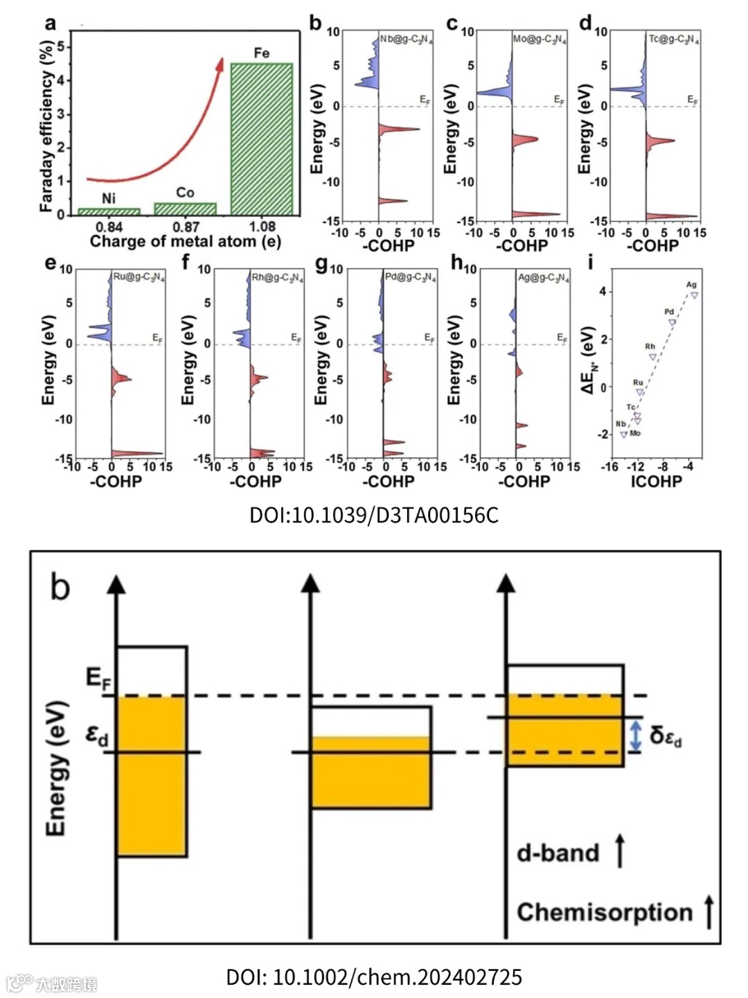 🔹d带中心:对于过渡金属催化剂,d带中心的能量位置是衡量其与吸附物相互作用强弱的关键描述符。