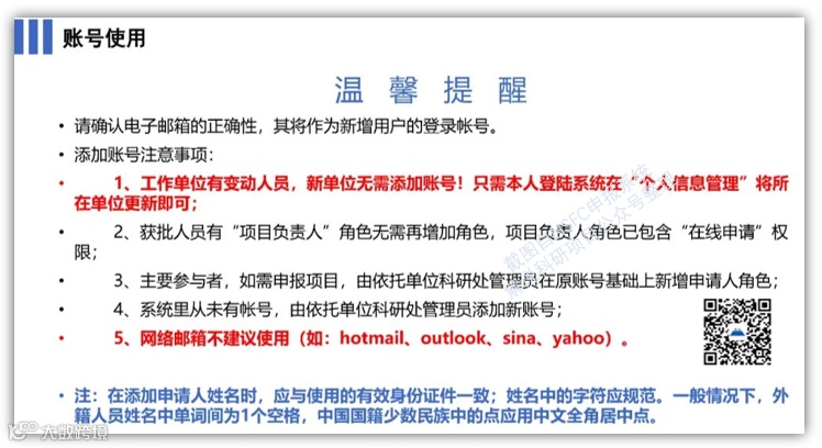如果无法收到基金委的邮件,可能会无法添加参与人;有可能会收不到基金委在后续评审环节的特定邮件(虽然基金委不一定会发邮件)。
