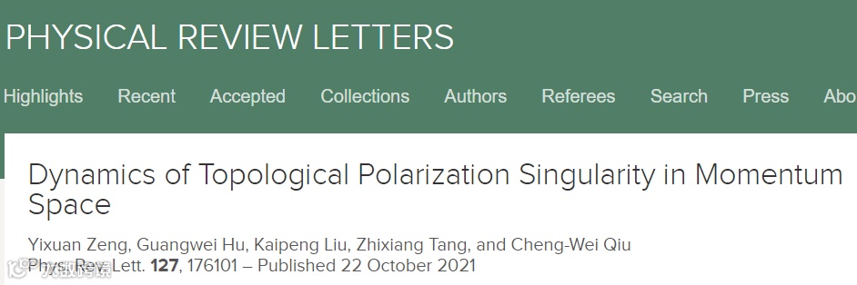 在光子晶体板结构中,不同于用来描述本征模式近场特性的拓扑能带理论,在其远场辐射的极化场中极化奇点作为一类新的拓扑特征被发现。近日,湖南大学唐志祥教授同新加坡国立大学仇成伟教授课题组合作,研究了极化奇点在光子晶体动量空间中的动态演变过程。相关研究成果以“Dynamics of topological polarization singularity in momentum space”为题,发表在Physical Review Letters上。