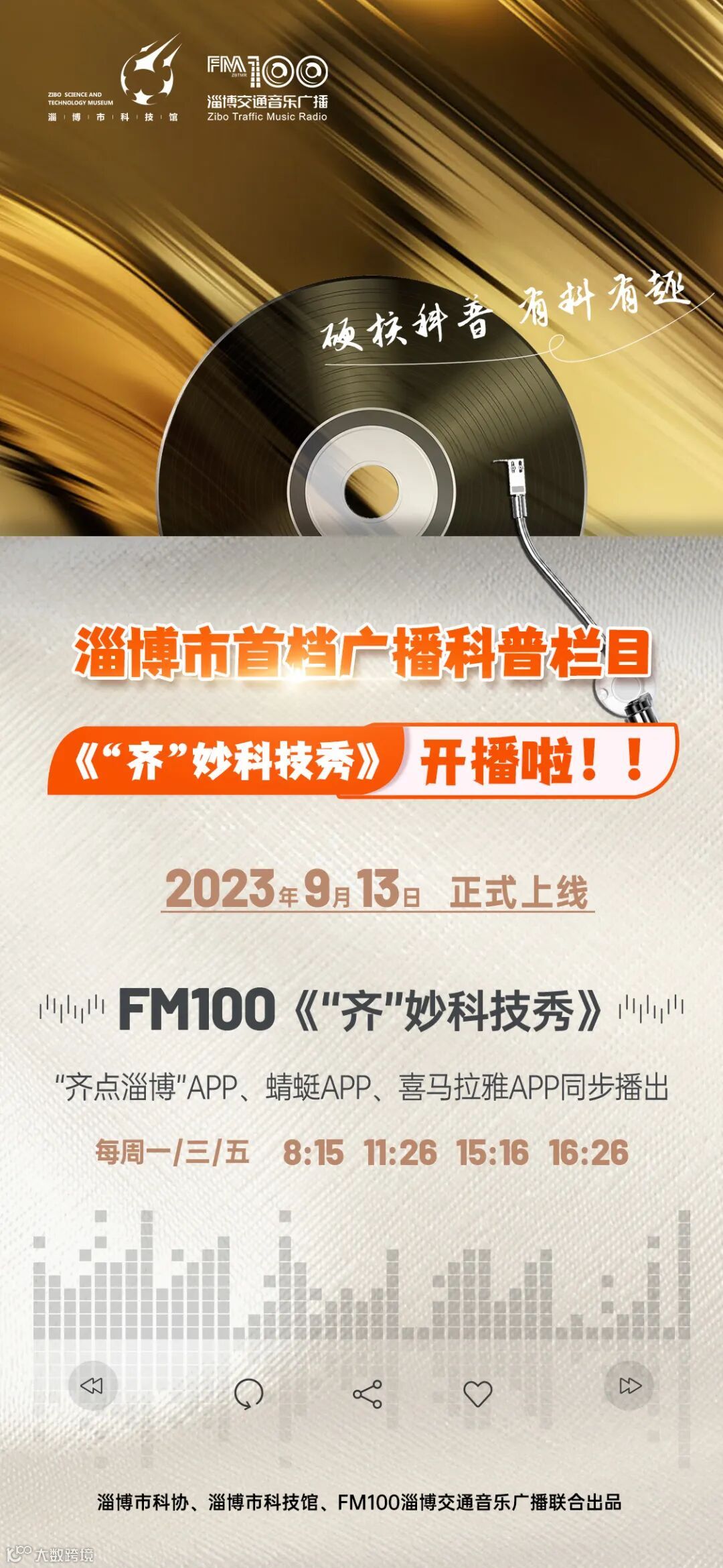 导读:由淄博市科协、淄博市科技馆、FM100淄博交通音乐广播联合出品的淄博市首档广播科普栏目《“齐”妙科技秀》今日正式上线开播!齐点淄博App、蜻蜓App、喜马拉雅App同步播出!
