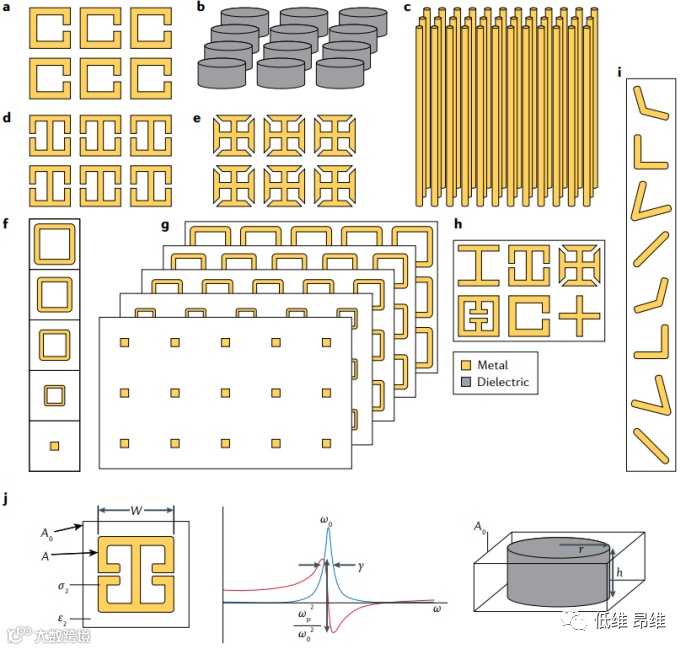 图2. 电磁超材料设计中使用的亚波长元件示例。