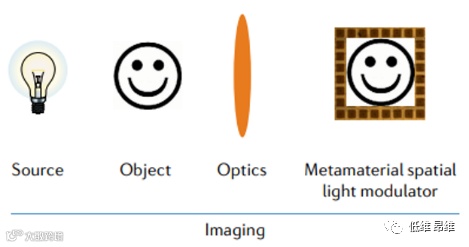 超材料空间光调制器能够设计非同构成像系统,特别是编码孔径成像。取而代之的是焦平面阵列,在物体后面放置一个空间光调制器,然后是一个单像素探测器。因此,空间光调制器之后的光学组件在非成像模式中操作,主要目的是收集从空间光调制器发出的所有光。对于这些单像素成像系统,空间光调制器是关键的技术组件,而超材料的应用大大扩展了它们的用途。