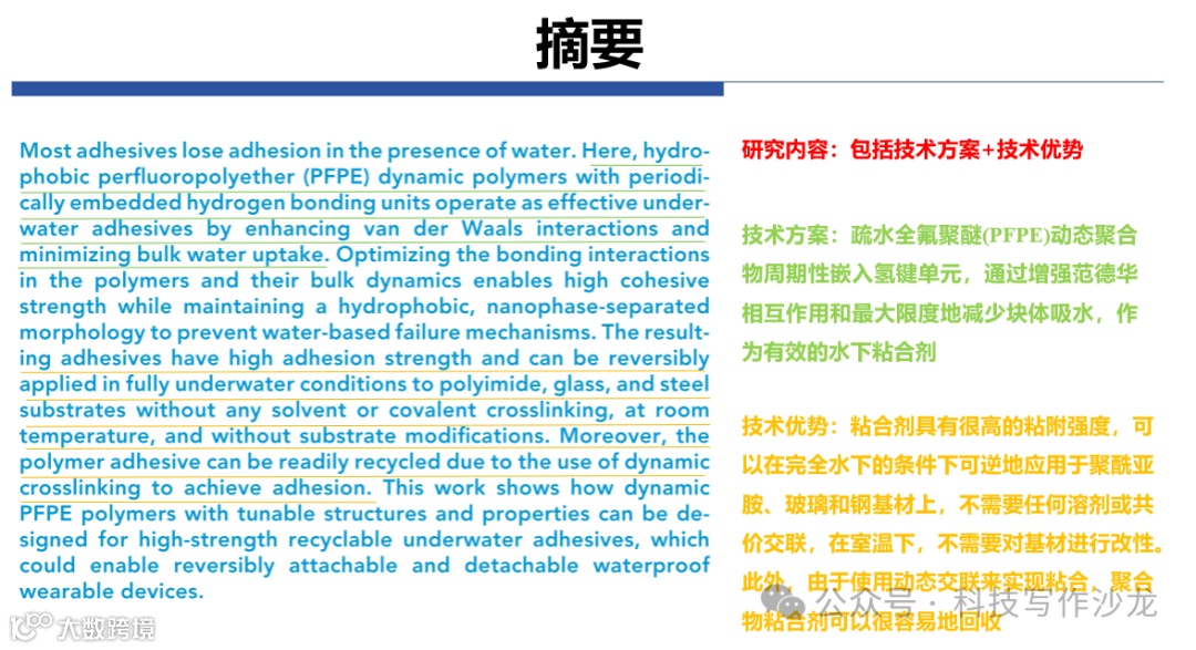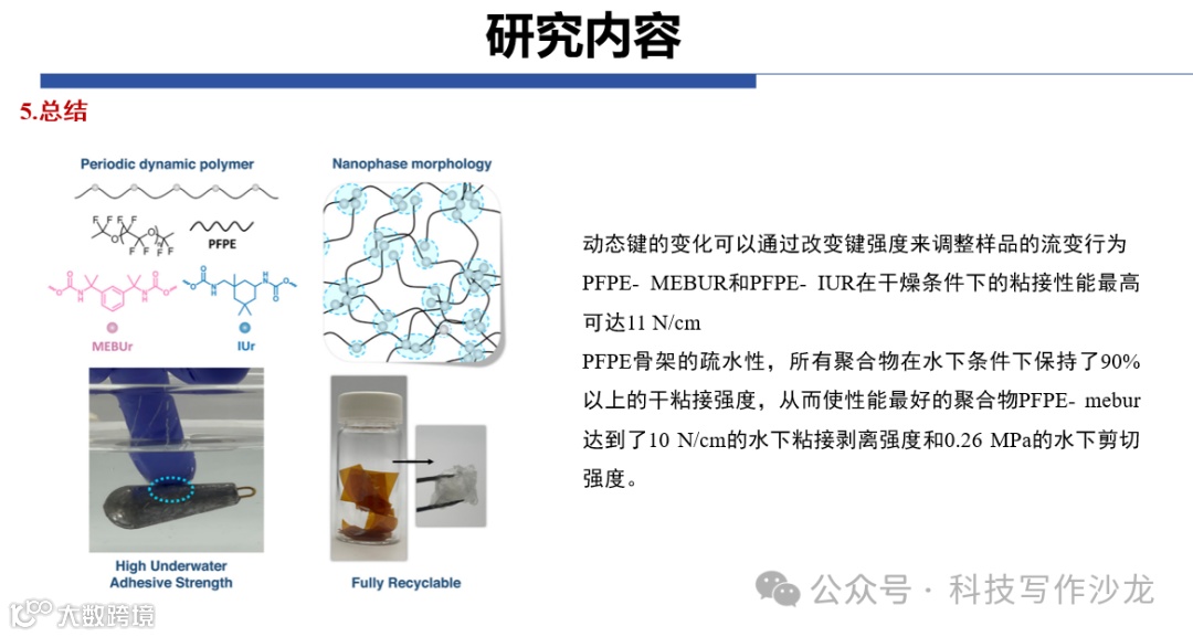具有高水下粘合强度的可调、可重复使用和可回收的全氟聚醚周期性动态聚合物