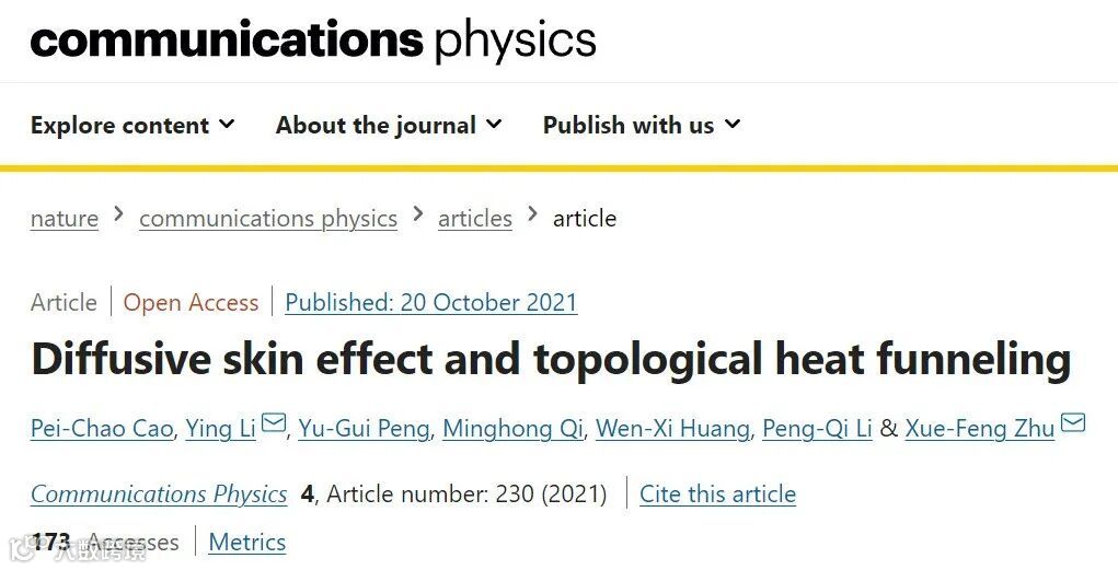 Pei-Chao Cao, Ying Li, Yu-Gui Peng, Minghong Qi, Wen-Xi Huang, Peng-Qi Li and Xue-Feng Zhu, Diffusive skin effect and topological heat funneling, Communications Physics 4, 230 (2021).