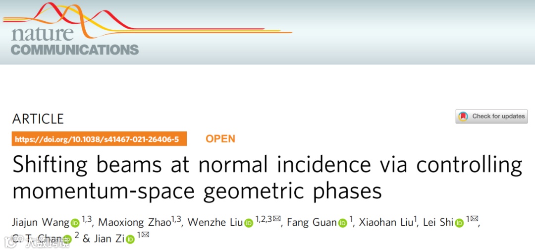研究工作提出了利用光子晶体去调控光束实空间位移的新机制,即利用光子晶体动量空间的偏振场去调控光束的动量空间相位梯度,而实现对光束实空间的调控。这个工作扩展了光子晶体对光束的调控维度,进一步证实了光子晶体动量空间的偏振结构可以作为一个有效的光场调控新自由度。文章的共同第一作者为王佳俊博士生、赵茂雄博士生和刘文哲博士。通讯作者是复旦大学的资剑教授、石磊教授和香港科技大学的刘文哲博士。香港科技大学的陈子亭教授也指导了本工作。