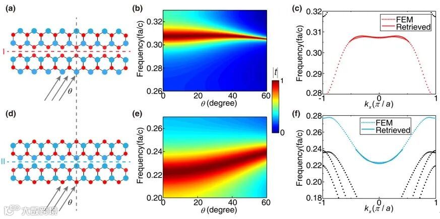 图1. 两种界面的透射率谱与界面态的色散图。