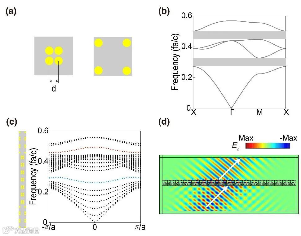 图4. 正方晶格光子晶体中的界面态与负折射。