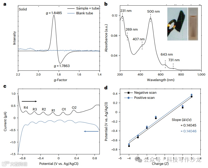 3、应对理解电子行为:通过紫外-可见吸收光谱、电子顺磁共振谱、差分脉冲伏安法、循环伏安法以及飞秒瞬态吸收光谱等多种光谱技术,综合分析了Ag135Cu60的光学吸收特性、电子结构、电化学特性和超快电子动力学行为。揭示了其具有分子和金属双重特性的独特电子行为,如在不同激发波长下展现出的异常功率依赖性,以及与声子耦合相关的电子淬灭现象等。