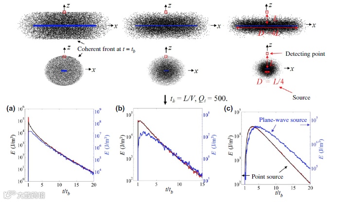 近日,法国巴黎大学朗之万研究所的Xiaoping Jia和中国石油大学(华东)深层油气重点实验室的Li-Yun Fu研究团队提出了一种有限尺寸散射介质中的有效反演方法,其中边界反射起着至关重要的作用。为了拟合散射尾波的能量分布,他们在各向同性散射近似下,通过圆柱和平板几何的蒙特卡罗模拟来求解声辐射传输方程。模拟表明,在无限介质中,与简单的辐射传输解的拟合可能导致散射平均自由程 ls 和吸收量