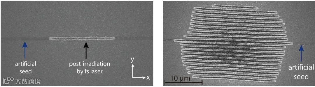 为了克服这一问题,近日,来自西湖大学的研究人员演示了利用低能量激光诱导氧化,实现硅薄膜表面大面积规则纳米光栅的单次曝光成形。更进一步,他们提出并实现了利用“人工种子”提升纳米光栅规整度的技术。
