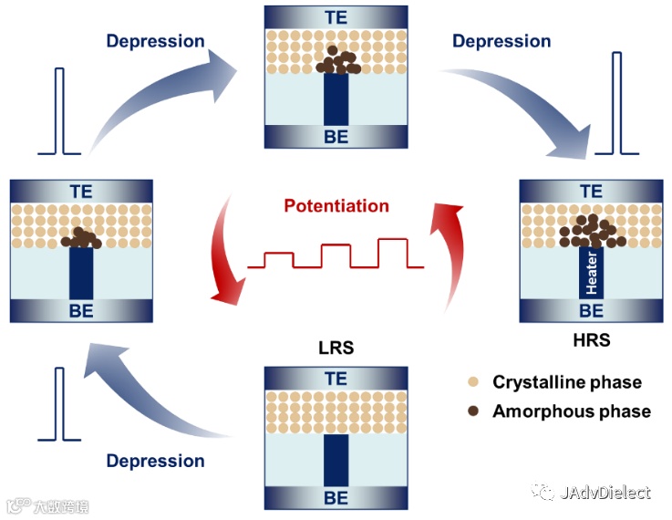 此外,近几年来,诸多研究揭示了相变存储器在多级存储以及其电导可调控方面的特性。由此,相变存储器逐渐成为备受期待的电子突触器件。相变电子突触其可靠突触可塑性的实现主要依赖于存储器本身的多级存储可靠性以及编程脉冲激励的驱动。