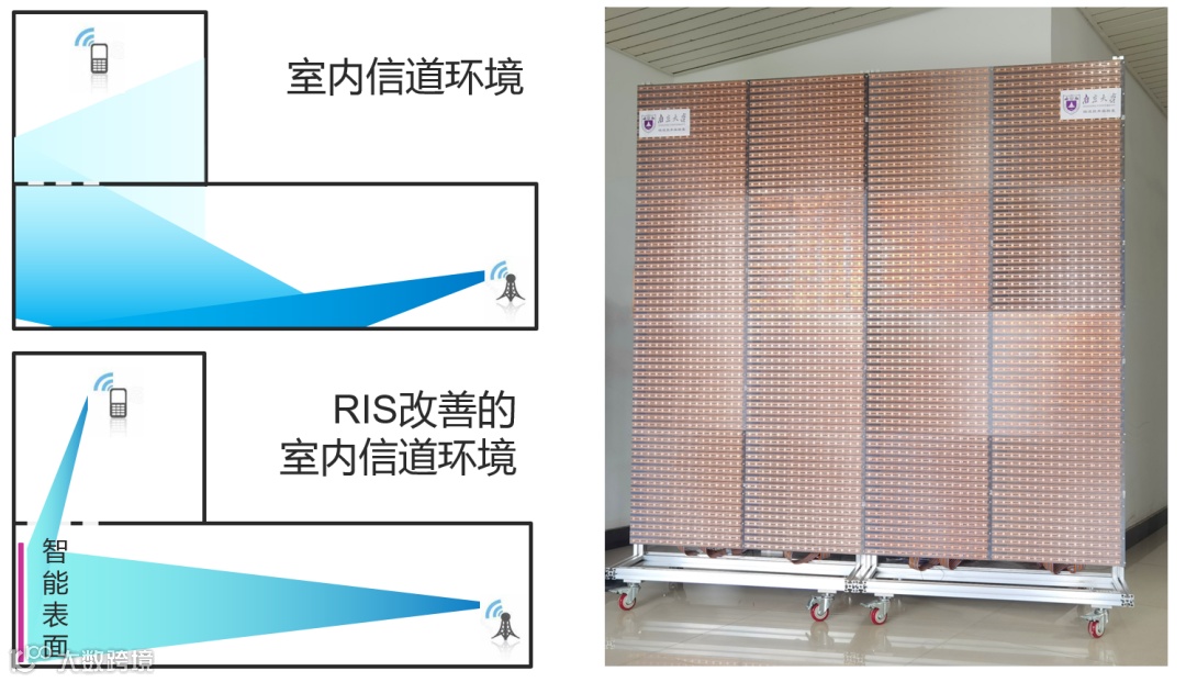 图1 左:智能表面改善通信信道环境;右:智能表面