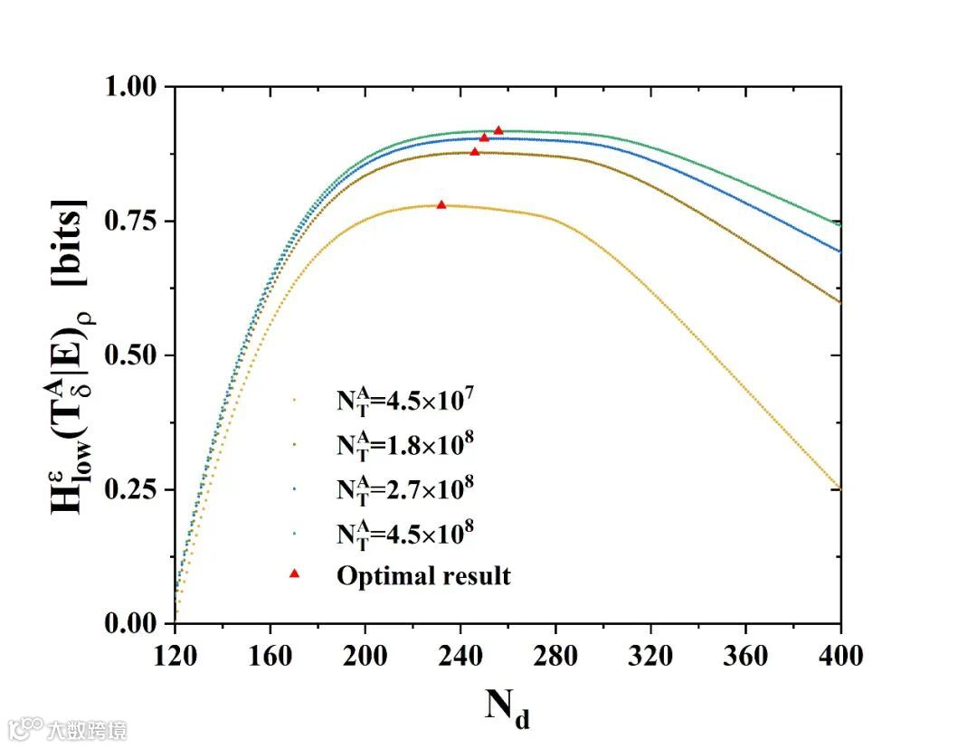 =256,对应平滑熵为0.9 bit/count。据此,研究人员生成规模为80000 × 9000的Toeplitz矩阵,进而从原始比特中提取真随机数,最终实现了4 Mbps的真量子随机数生成速率。