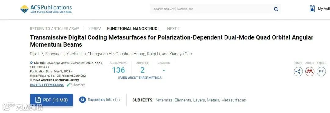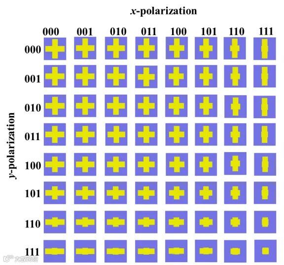 图1. 双模态四波束 OAM透射数字编码超构表面