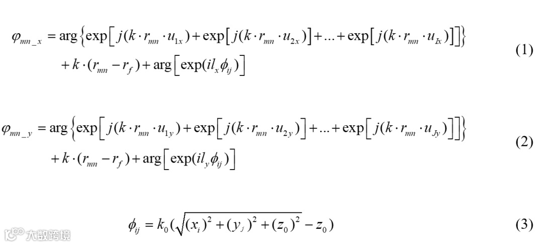 根据方向图卷积原理、相位补偿理论和方向图乘积定理,可以推出公式1、2及3,利用该公式可以确定产生任意指向、任意波束数量和任意OAM模态的超构表面数字编码相位矩阵。利用该公式要实现双模态四波束OAM,需要在x极化方向加载+1模态双波束OAM编码相位,并在y极化方向加载-2模态双波束OAM编码相位,此外还要卷积由喇叭天线球面波到平面波的相位补偿,才能产生对应的+1和-2模态平行分布的四波束涡旋电磁波束。同样为了体现出波束与模态的灵活控制特点,改变x、y极化方向上的编码相位,亦可实现+1和-2模态交叉分布的四波束涡旋电磁波束,其编码示意图及三维辐射方向图如图3所示。