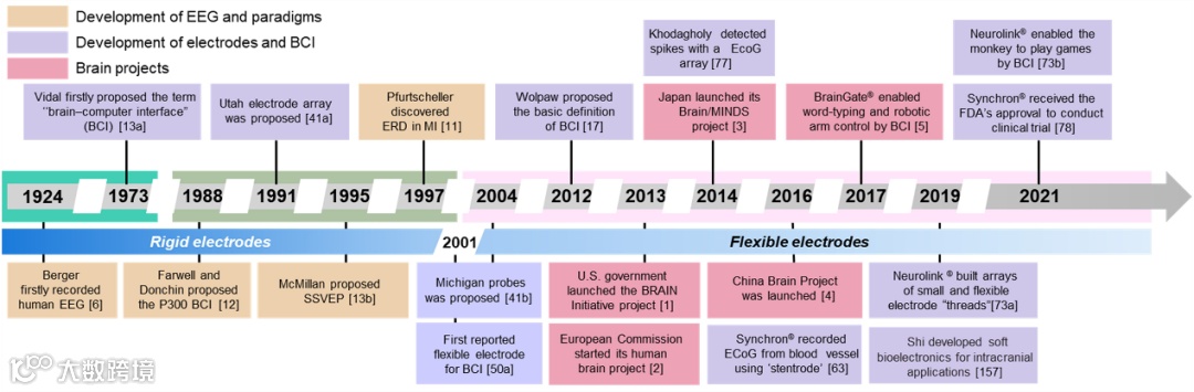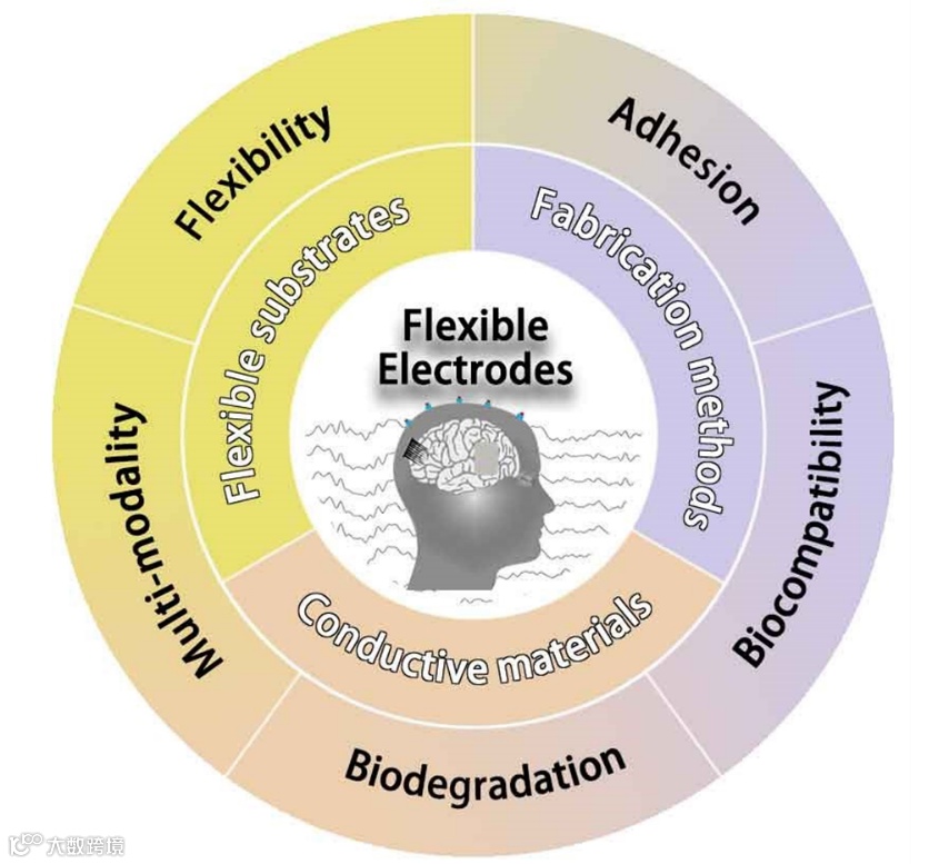 在这篇综述中,作者简要介绍世界各地的脑研究相关项目,神经电信号的分类以及使用柔性电极的必要性。然后系统回顾了不同类型柔性电极种类、电极材料、制造方法、柔性基底材料以及对柔性电极的其它额外要求。