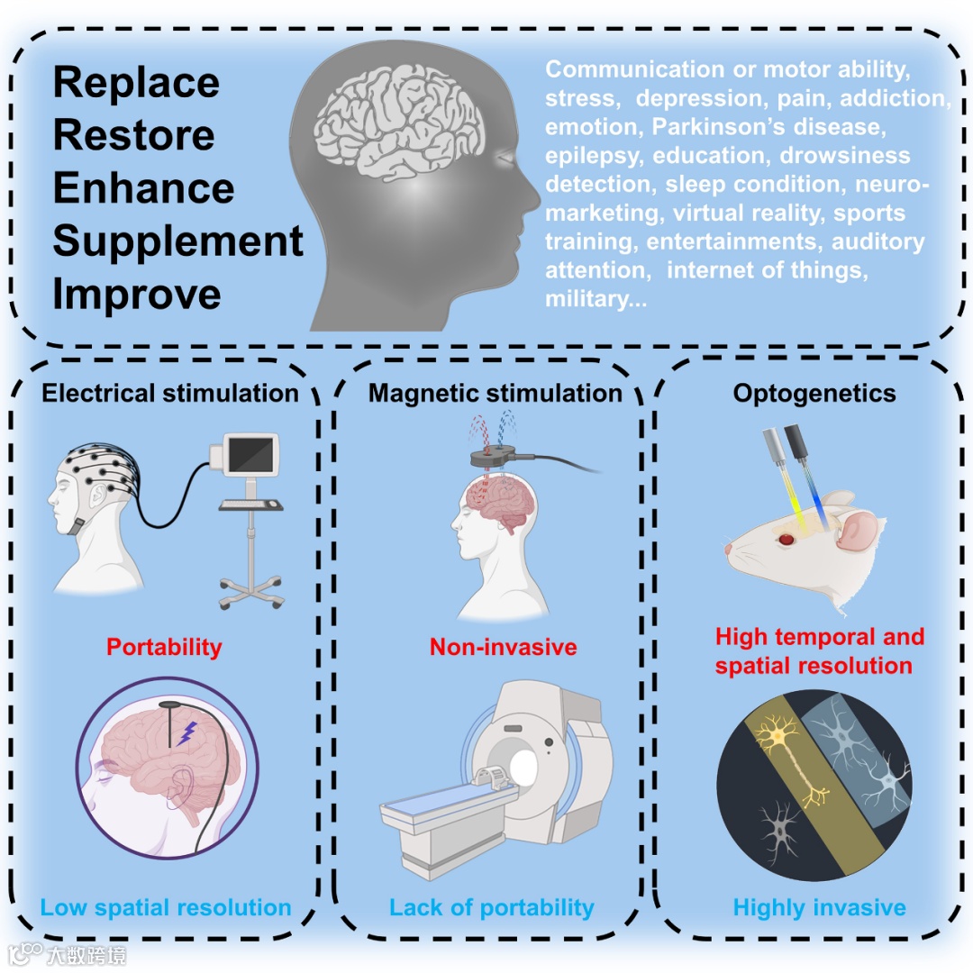 尽管开发便携且安全的BCI柔性电极仍存在许多障碍,但它仍然拥有光明的未来。基于柔性电极的BCI技术已经通过脑控运动和语言功能以及治疗各种神经和认知障碍来体现其价值。此外,物联网也是BCI的蓝海。尤其是在元宇宙方面,BCI是未来元宇宙与人类之间的交互渠道,是吸引人们的完美方式。在BCI技术的帮助下,信息可以随时随地无缝传达。与运动控制或语音控制相比,它提供了更多的便利、隐私和可能性。它不仅可以影响人类的感官信息,还可以直接将物理信息传达给大脑,改变人类的交流方式。它可能是元宇宙的终极形式。此外,将大脑上传到云端,在数字空间中创建意识、情感和记忆,可能会提供一种实现精神永生的方法。如果人体的感觉器官和四肢冬眠或冷冻,只保留大脑的活动,可以减少其他疾病的损害和影响,同时也可以用有限的能量和资源延长大脑的寿命。