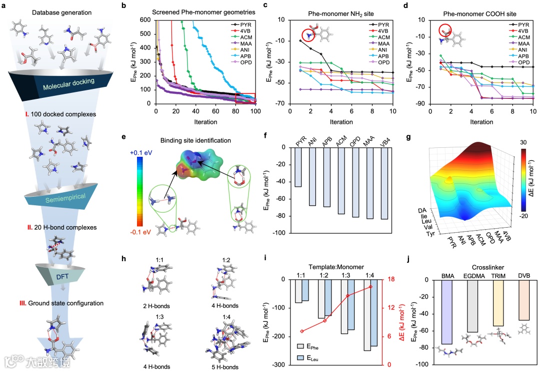 图2. 基于 QuantumDock 的分子印迹聚合物优化并实现苯丙氨酸选择性识别