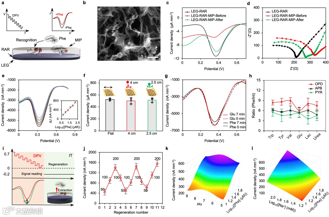 图4. 基于激光切割石墨烯的电化学苯丙氨酸传感器表征