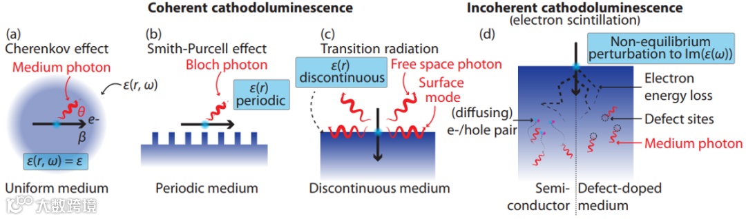 文章不仅对大多数类型的相干和非相干阴极发光进行了系统分类,而且重新审视了几种自由电子辐射作为自由电子与纳米光子结构中特定光子本征模式相互作用的形式。