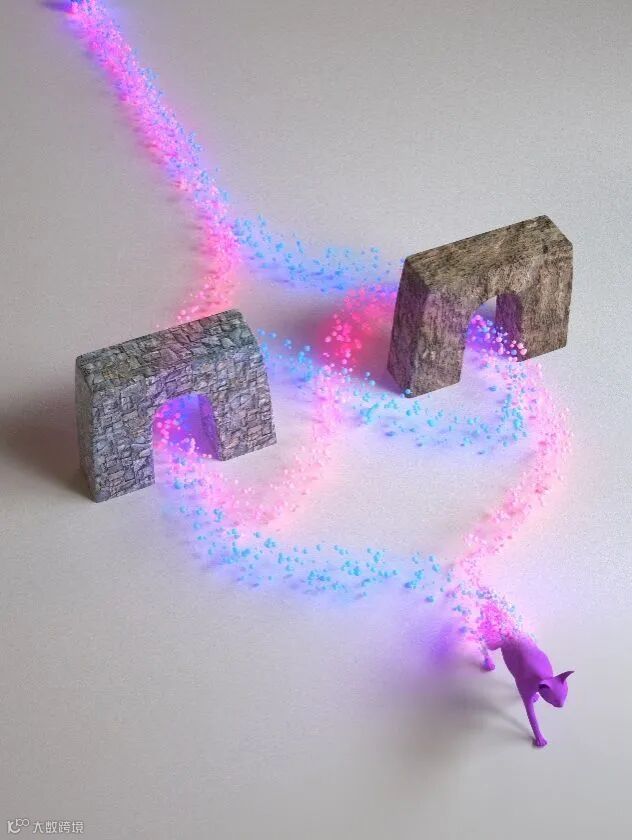 图1 | 量子不确定因果序的示意图。蓝色和红色路线经过两个门的时序不同且处于量子叠加态