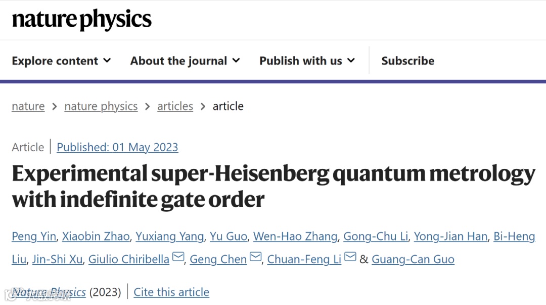中国科学技术大学郭光灿院士团队在量子精密测量的研究中取得重要进展。该团队李传锋、陈耕等人与香港大学Giulio Chiribella合作,利用量子不确定因果序实现了超越海森堡极限精度的量子精密测量。研究成果于5月1日以「Experimental super-Heisenberg quantum metrology with indefinite gate order」为题发表在国际著名期刊《自然·物理》(Nature Physics)上。其中,中科大李传锋、陈耕与港大Giulio Chiribella为论文共同通讯作者,中科院量子信息重点实验室已毕业博士研究生殷鹏、香港大学博士生赵晓斌为论文共同第一作者。