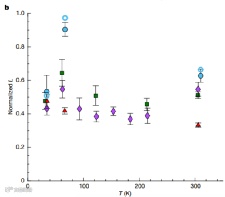 作者发现随着T的增加,狄拉克点附近的L峰增加和变宽,L/L0峰值位于在清洁SLG和无序SLG的双极扩散极限之间,揭示了在高于120K的温度下e-ph耦合与e-e相互作用相比的优势。