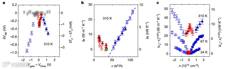 作者报告了在30 K到310 K的T范围内封装在hBN中的剥离SLG的κe测量值,该方法没有忽略e-ph耦合,而是揭示了它对κe的影响,以及e-e相互作用的特征。