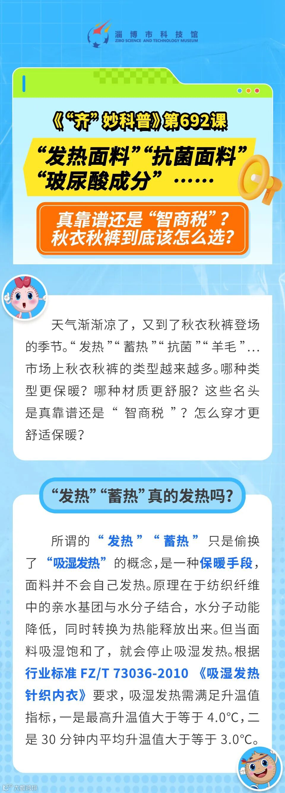 【可以听的科学课】《“齐”妙科普》第692课  发热面料、抗菌面料、玻尿酸成分…真靠谱还是“智商税”?秋衣秋裤到底该怎么选? 淄博市科技馆