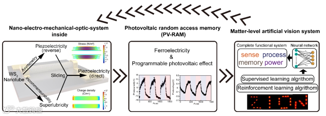 图:新型铁电效应、光伏随机存储器以及多功能人工视觉系统