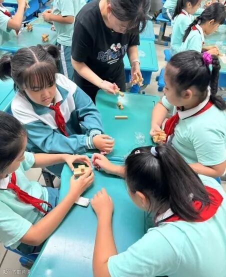 此次科普直播课全国30个省份117家省、市、县级科普场馆同步上课。课程采用线上+线下的方式,由山西省科技馆邀请中国工美行业艺术大师刘晓辰老师授课,走进山西省古建筑博物馆,刘老师讲解不同的榫卯结构,以及榫卯在不同朝代的历史演变,认识榫卯在古建筑中的应用。在“飞檐走壁”环节,教室里的学生们纷纷赞叹它不仅外形精致唯美更具有超强的稳定性,榫卯结构展现出中国古代匠人的智慧与精湛技艺。市科技馆的老师现场指导同学们拼装鲁班锁,让学生们亲身体验一下榫卯结构的奥秘。