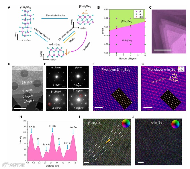 3.通过原位透射电镜对二维In2Se3进行相位与极化调制