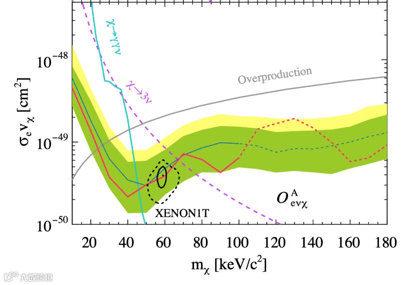 对轻暗物质的探测,近年来成为研究关注的热点问题。但由于星系中暗物质的速度只有几百公里每秒,轻暗物质和原子核的弹性散射不足以产生足够大的核反冲,难以克服实验能量阈值限制从而被观测到。与此不同,费米子暗物质如果被电子或者原子核吸收后变成中微子,是个非弹性散射过程,非常类似于惰性中微子被原子吸收后的信号。根据爱因斯坦提出的质能关系,初态暗物质具有静能量E=mc2,加上末态中微子的质量几乎为零,暗物质质量会转化为末态中微子和电子或原子核的动能。因此,即使是小质量的暗物质,也能够通过该过程产生足够大的电子反冲或者原子核反冲信号,以克服能量阈值限制,从而被实验探测到。这为暗物质直接探测实验探测几十keV到几十MeV质量的轻暗物质打开了一个新窗口。