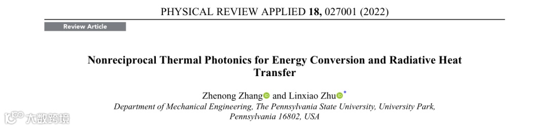 Zhenong Zhang and Linxiao Zhu, Nonreciprocal Thermal Photonics for Energy Conversion and Radiative Heat Transfer, Physical Review Applied 18, 027001(2022).