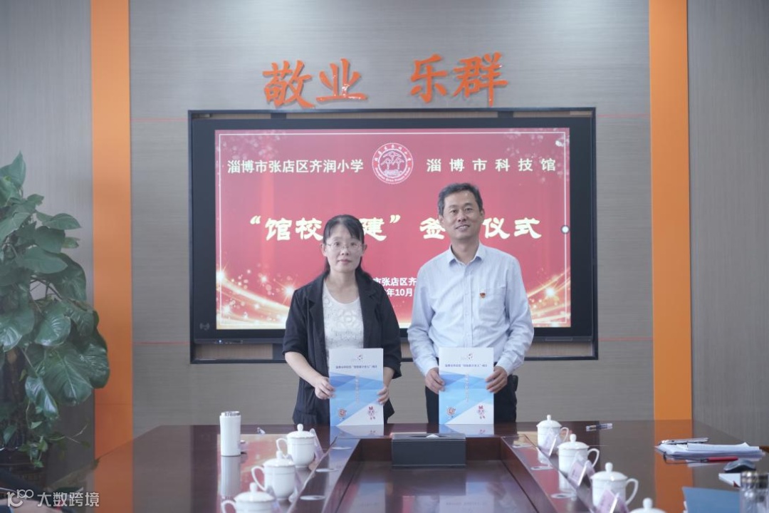 为深入贯彻落实国务院《全民科学素质行动规划纲要(2021-2035)》和《淄博市“蒲公英”科技教育三年行动计划》,10月11日,淄博市科技馆与淄博市张店区齐润小学《馆校联合育人战略合作协议》签约仪式在张店区齐润小学成功举办。张店区齐润小学校长崔守峰、淄博市科技馆馆长王伟、学校相关领导及展教部、青少年部、品牌文化部相关负责同志参加签约仪式。